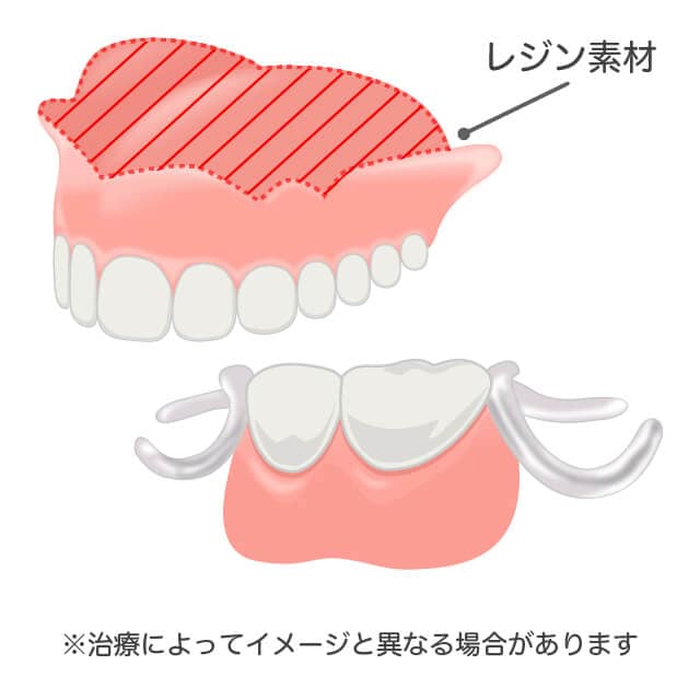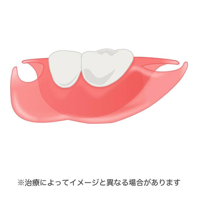 口の粘膜に触れる部分が、プラスチックで作られた入れ歯です。ほとんどの症例に対して使用することができます。万が一割れたり欠けたりしたとき、修理がしやすいこともメリットです。